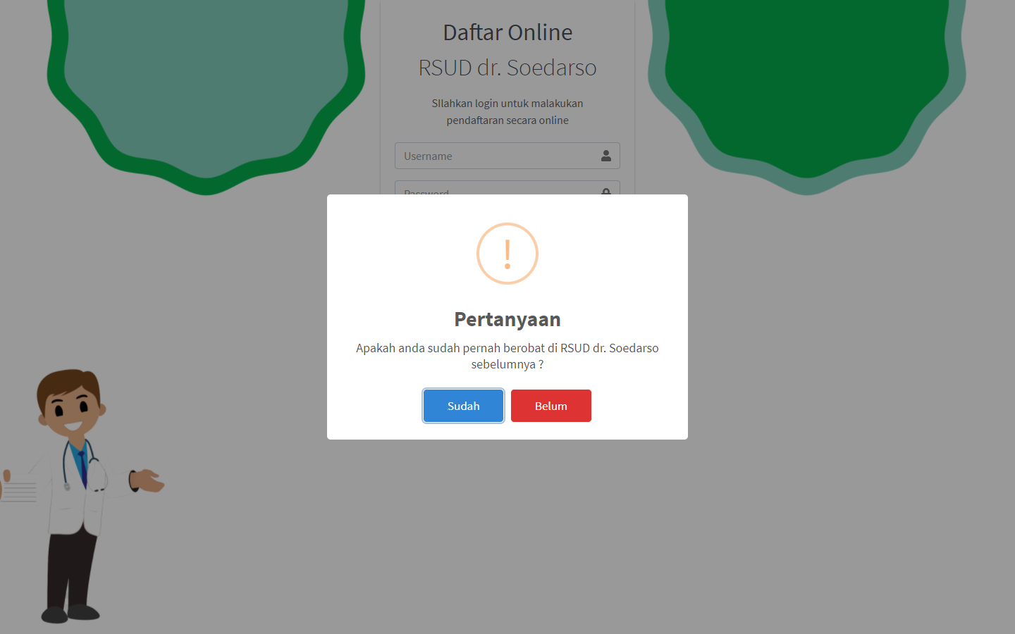 Isi Inputan No. MR atau NIK anda untuk mengecek apakah anda sudah pernah berobat sebelumnya, jika datanya valid maka lanjutkan inputan anda jika tidak artinya anda belum pernah berobat di RSUD dr. Soedarso, silahkan register dengan pasien baru. Jika sudah semua inputan anda Klik Register untuk register data anda.